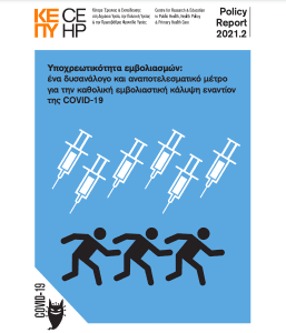 Στην περίπτωση της Ελλάδας η επικείμενη νομοθετική ρύθμιση της κυβέρνησης για εμβολιαστική υποχρεωτικότητα σε μία σειρά από επαγγελματικές κατηγορίες είναι μέτρο δυσανάλογο (non-proportional) δεδομένου ότι υπάρχουν ακόμη πολλά περιθώρια για βελτίωση της εμβολιαστικής κάλυψης κύρια μέσω πολιτικών ενίσχυσης της ζήτησης των εμβολίων.