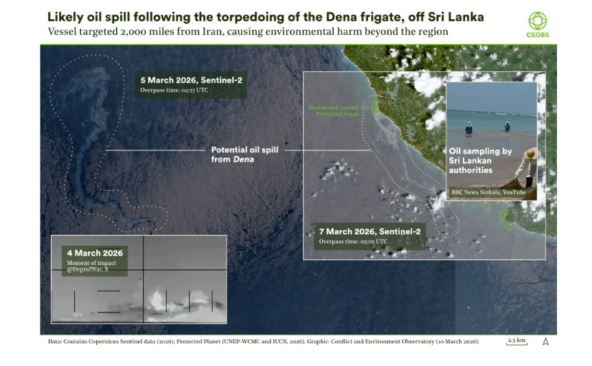 Η οργάνωση Conflict and Environment Observatory (CEOBS) επιχειρεί εδώ και λίγο καιρό μια καταγραφή των περιβαλλοντικών προβλημάτων που προκύπτουν από την επιχείρηση Epic Fury στο Ιράν, στο Ισραήλ και στα κράτη του Κόλπου, καθώς έχει εντοπίσει πολλά περιστατικά ρύπανσης που θέτουν τους ανθρώπους και τα οικοσυστήματα σε κίνδυνο τόσο άμεσης όσο και μακροπρόθεσμης βλάβης. Το CEOBS (Παρατηρητήριο για τις Συγκρούσεις και το Περιβάλλον) είναι μια βρετανική μη κυβερνητική οργάνωση που ιδρύθηκε το 2018 και ο κύριος στόχος της είναι να αναδεικνύει το περιβάλλον ως σιωπηλό θύμα των πολεμικών συγκρούσεων.